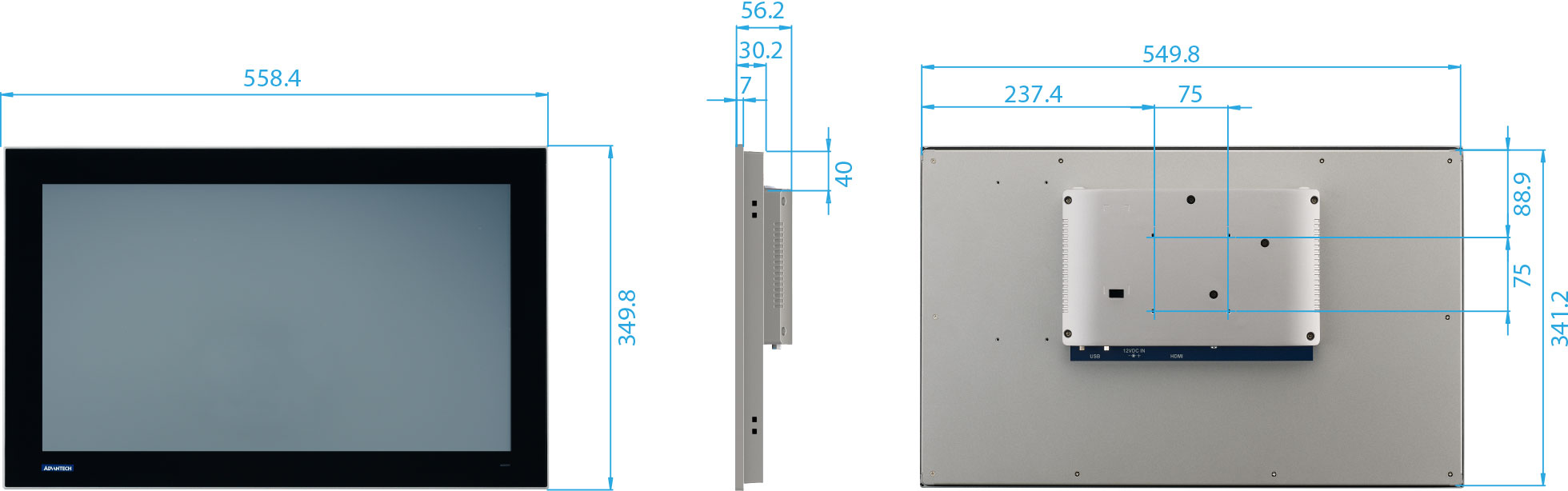 Panel cut-out dimensions: 550.30 x 341.8 mm (21.67 x 13.46 in)