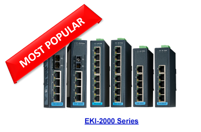 Advantech’s EKI-2000 Series are the best deal offer for your Ethernet connections. Their super-slim IP30 metal casing design provides reliable & compact management to quickly deliver continuous data transmission with high degree of security, making them an ideal option for your Ethernet solution.