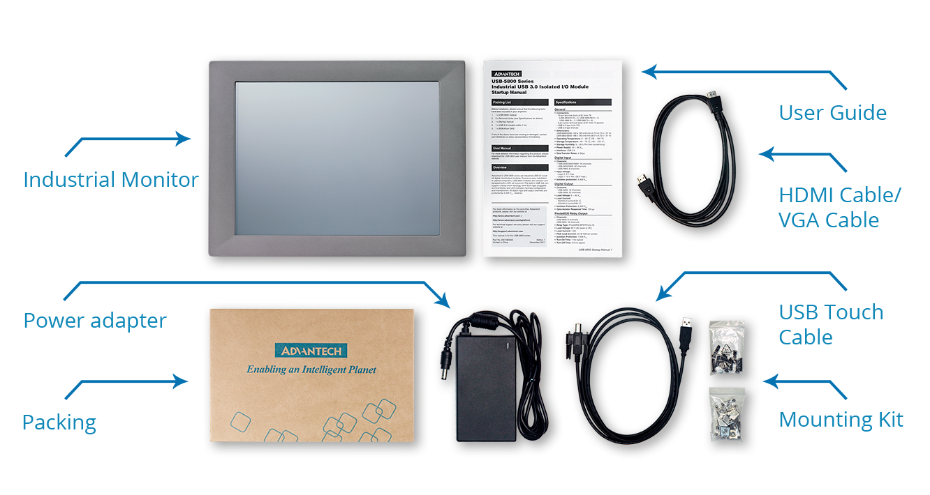• Advantech’s FPM series of industrial-grade touch monitors are designed to support diverse industrial visualization and control applications. Featuring a rugged design, wide operating temperature range, and IP65-rated front panel for protection from water and dust, the FPM series can withstand operation in harsh industrial environments. Although commercial monitors have been employed for industrial visualization applications, overall they are less durable and offer fewer capabilities compared to industrial-grade monitors.