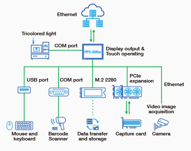 PPC-600 can support Mini-ITX motherboards and has a modular design, with extra ports and expansion slots for diverse applications including machine control, data visualization, and process management. |